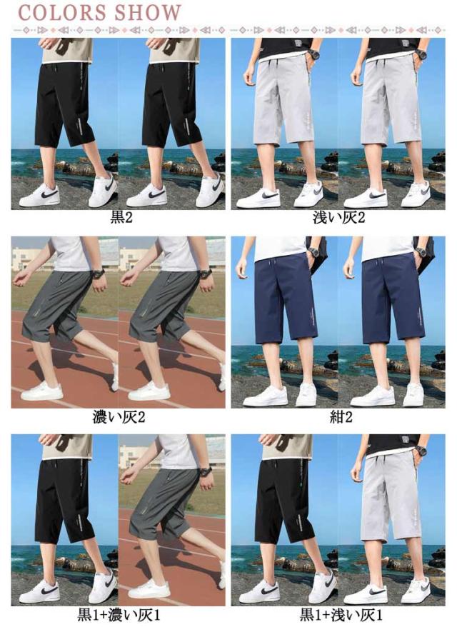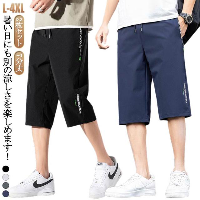 ワイドパンツ 7分丈 クロップドパンツ 2枚セット メンズ 冷感 接触冷感 イージーパンツ ひんやり 涼しい パンツ カジュアルパンツ ロングパンツ ゆるパンツ ウエストゴム 無地 カジュアル ゆったり お洒落 シンプル 大きいサイズ ボトムス 春 夏