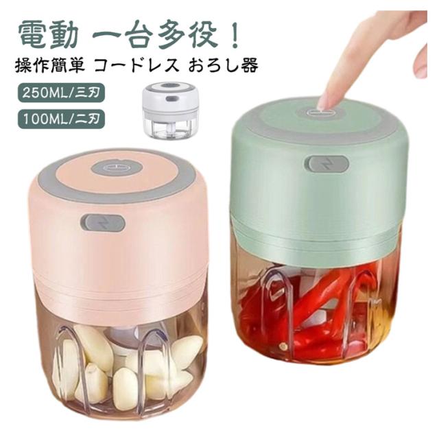 大根おろし器 小型 みじんぎりチョッパー 氷 操作簡単 泡立て器 砕け も チョッパー 電動 大根おろし だいこんおろし器 みじん切りチョッパー 大根おろし器 コンパクト USB 充電式 大根おろし だいこんおろし器 小さめ ミニサイズ 250ML/三刃