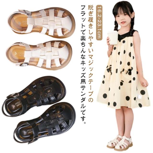| 脱ぎ履きしやすいマジックテープのフラットで楽ちんなキッズ用サンダルです。デザインと抜け感にこだわったグルカサンダル。 つま先が覆われているので、しっかり固定されて小さいお子さんでも歩きやすい形。 フェイクレザーなので、濡れても大丈夫なのが嬉しい♪ マジックテープで着脱しやすい。 ラウンドトゥでころんとした可愛らしいシルエットに仕上げたアイテムはカラーで合わせやすいのがポイント。 男女兼用、ユニセックスのサンダルです。 | |