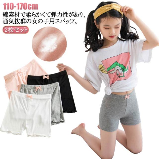 2枚入り 子供 3分丈 こどもファッション 夏 女の子スパッツ 2枚入り 女の子 オーバーパンツ 綿 スパッツ インナーウエア 女子服 ジュニア 下着 ショーツ かわいい リボン