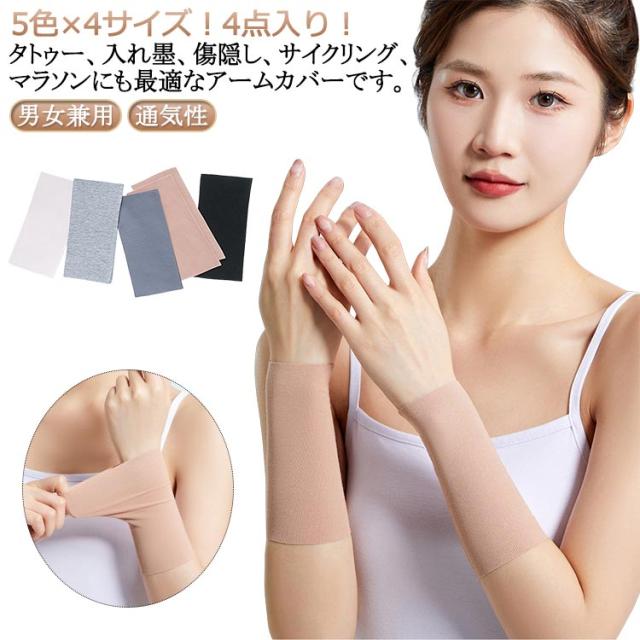 隠すサポーター 薄手 4枚 タトゥー隠し 男女兼用 15cm メンズ 30cm 二の腕カバー 4枚 20cm レディース 50cm アームカバー ストレッチ 無地 通気性 二の腕サポーター 刺青隠し uvカット 日焼け対策 引き締め tatooかくし 傷跡かくし 冷え対策
