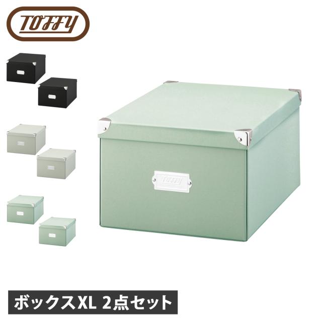 TOFFYの紙製のおしゃれなフタ付き収納ボックス。こちらはXLサイズの2点セットです。ビスなどを使わず、あっという間に組み立て!使わない時は折りたたんで収納できます。