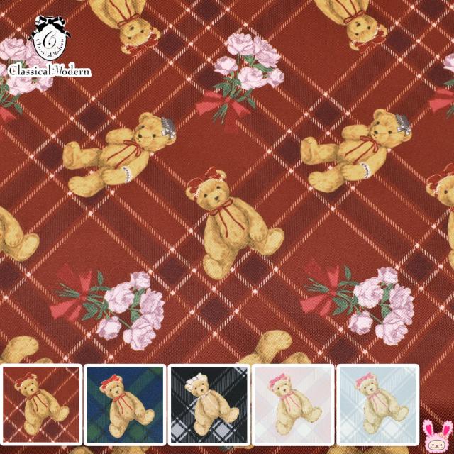 ロリータファッションの第一人者・青木美沙子さんと「クラシカルモダン」の夢のコラボ生地が登場!クラシカルモダンは、女の子の「可愛い」をぎゅっと詰め込んだ大人気シリーズ。今回のデザインは、ロリータに憧れるテディベアを主役にした、心ときめくタータンチェック柄です。クラシックな雰囲気漂うチェックの背景には、リボンやレースの帽子をちょこんとかぶった愛らしいクマたちがちりばめられ、まるで絵本の中から飛び出してきたかのよう。バラの花束も散りばめられまさにフェミニンでロマンティックな世界観そのものです。ロリータにガーリーにクラシカルな要素が絶妙に融合したこの生地は、ワンピースやスカートはもちろん、バッグやポーチなどの小物作りにもぴったり。