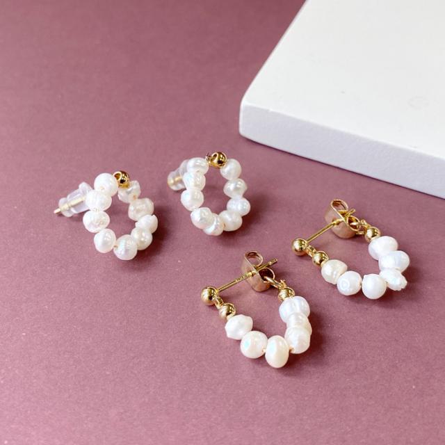 こなれた雰囲気のデザイン性の高い、天然淡水パールピアス