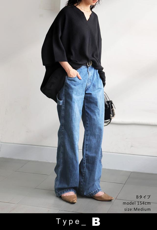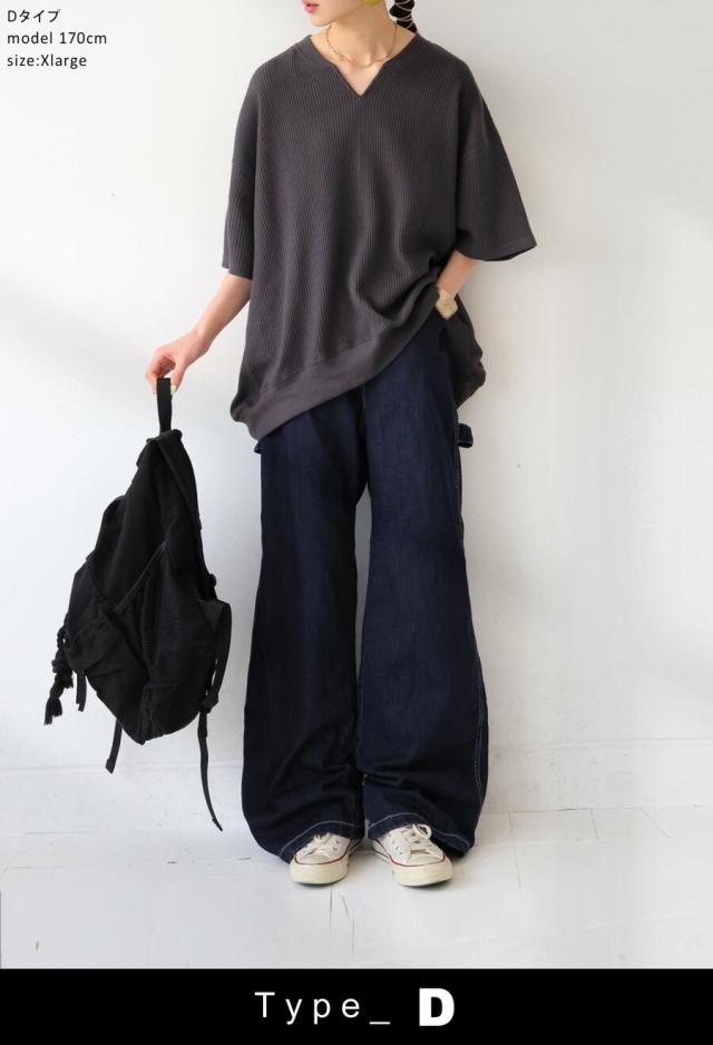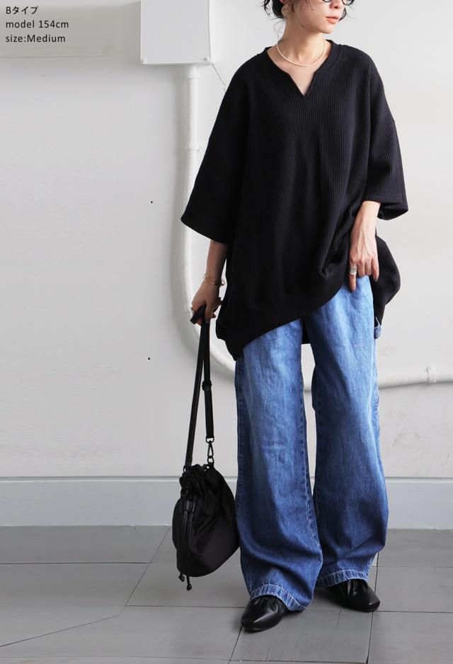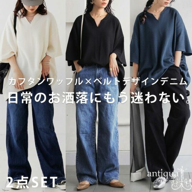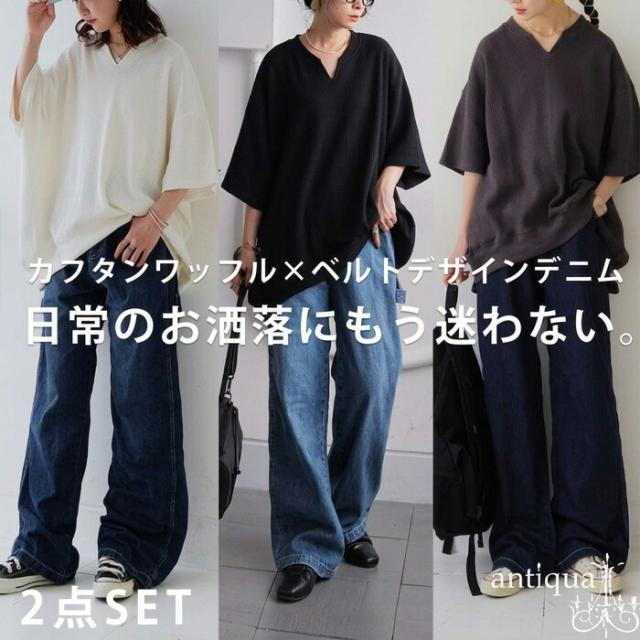 カフタンワッフルトップス デニムパンツ コーデセット 送料無料・メール便不可