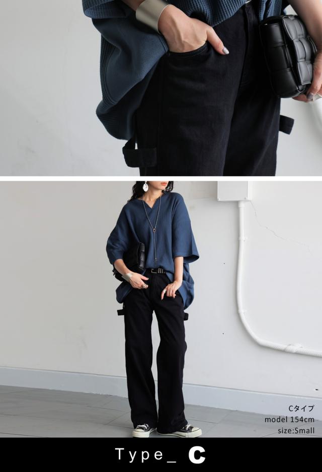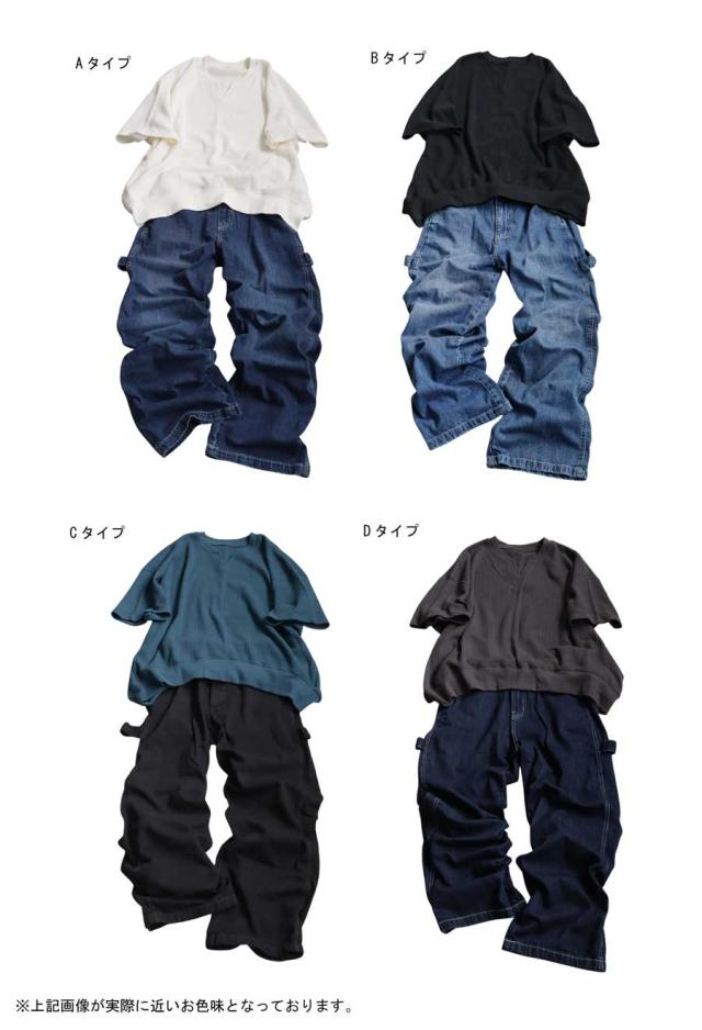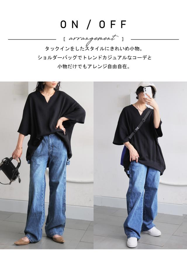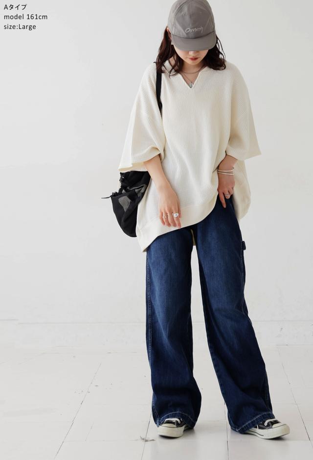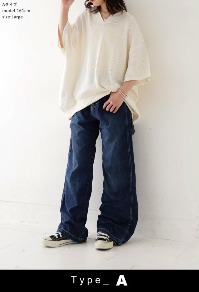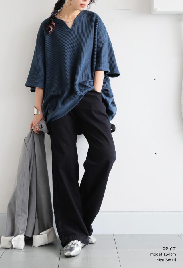code-00047 レディース セットアップ カフタン トップス プルオーバー トレーナー 半袖 パンツ デニム ワッフル 体型カバー オニワッフル 春 夏 カジュアル ナチュラル