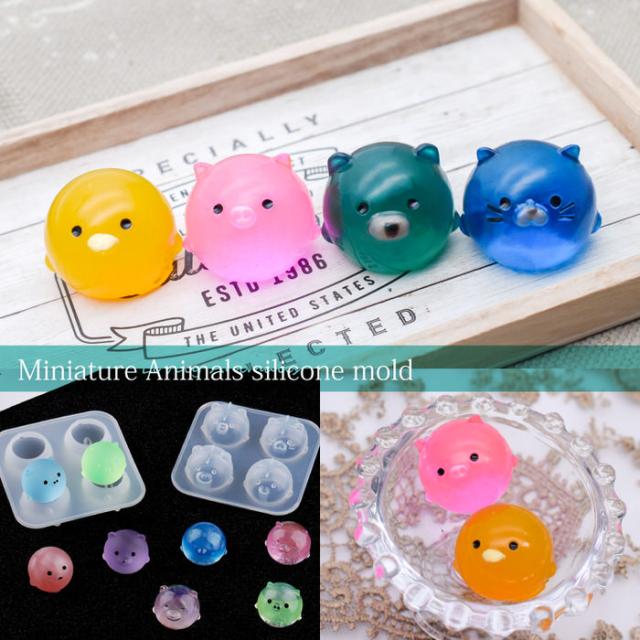 シリコンモールドアニマル動物4種ミニチュア | シリコンモールド アニマル 動物 ミニチュア 手作り レジン ネックレス 材料 UVレジン 3D デザイン ハンドメイド 手芸 アクセサリー 素材 パーツ ピアス イヤリング