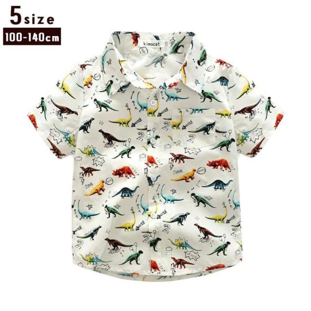 シャツ キッズ 男の子 半袖 トップス 恐竜 夏 かっこいい カジュアル かわいい お出かけ イラスト プリント 白 こども服 デイリー 100cm