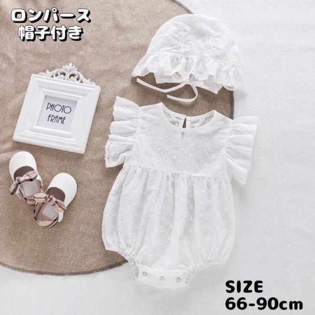 ロンパース 帽子 2点セット ノースリーブ ベビー服 赤ちゃん 女の子 カバーオール ボンネット 股下ボタン フリル レース 薄手 子供服 赤ん坊 乳