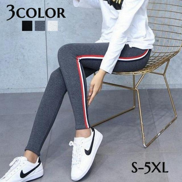 レギンス スパッツ レディース 婦人用 女性用 レギンスパンツ フルレングス 10分丈 スキニー サイドライン トリコロールカラー ヨガパンツ 運動