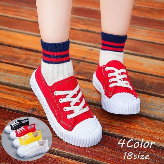 子供用スニーカー レースアップシューズ 紐靴 ひも靴 運動靴 ローカット ローテク キャンバス キッズ ジュニア ベビー 子ども 滑り止め 防滑 ゴム