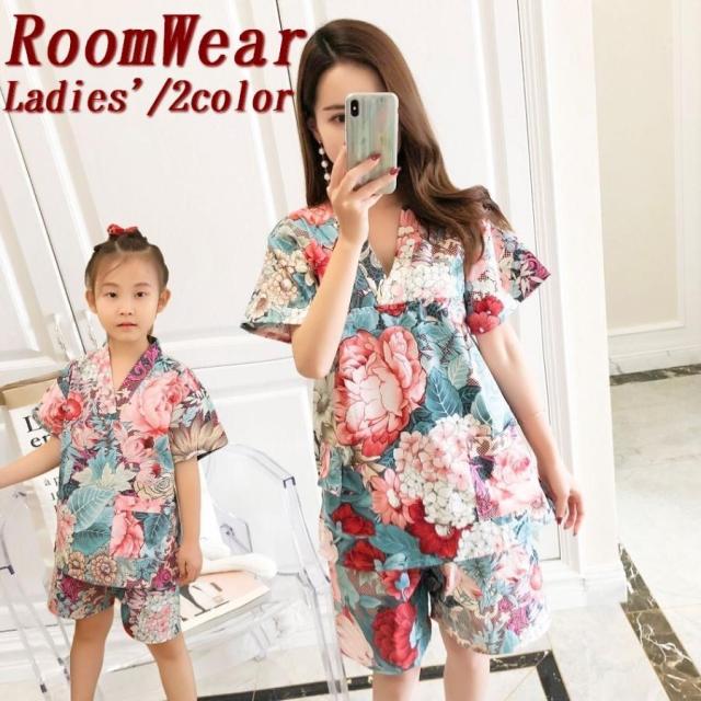 花柄がキュートなレディース用ルームウェア上下二点セットです。