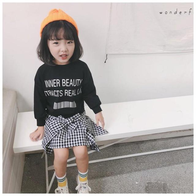 トレーナーとチェック柄スカートを合わせたお洒落なドッキングワンピースです。