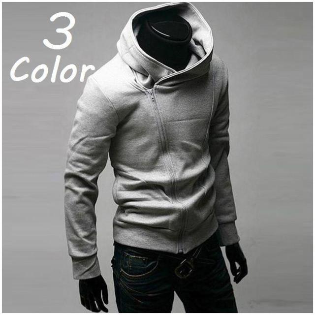 メンズ ジップアップパーカー 長袖 フード付き 斜めジップアップ トップス パーカー タイト スリム カジュアルファッション ぴったりめ きれいめ シ