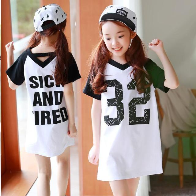 ワンピース 半袖 Vネック バックデザイン かわいい おしゃれ スポーティー 夏 子供 キッズ ジュニア 幼児 女の子 女児 110cm 120cm