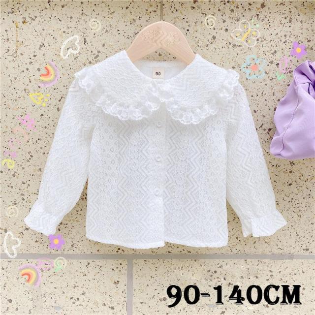 ブラウス シャツ トップス 子供服 キッズ ベビー 女の子 長袖 レース 無地 フリル 襟付き シンプル 上品 かわいい 春 秋 おしゃれ カジュアル