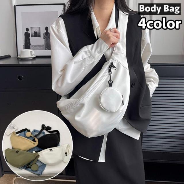 ボディバッグ ショルダーバッグ ミニポーチ付き 男女兼用 レディース メンズ 鞄 カバン 斜め掛け 肩掛け ファスナー シンプル カジュアル 女性用