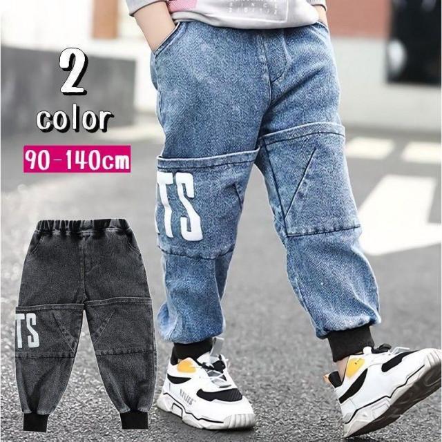 ロングパンツ ジョガーパンツ 長ズボン 子供服 裾リブ ウエストゴム ポケット付き 英字ロゴ デニム風 ボトムス キッズ ベビー 男の子 女の子 男児