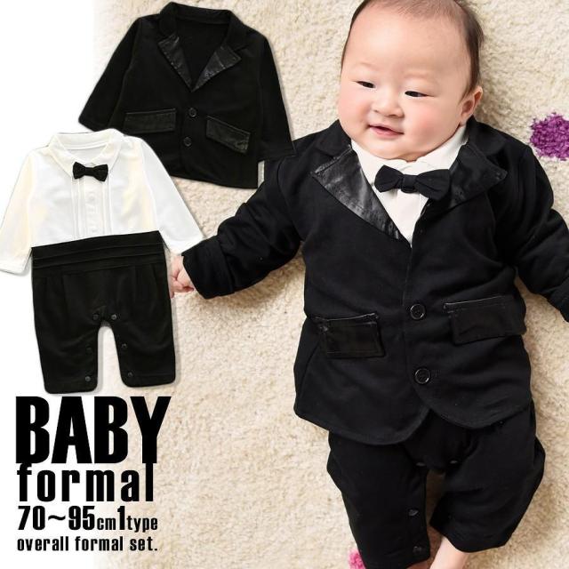 ロンパース ベビー服 フォーマル 長袖 無地 黒 ベビー キッズ 子供 スーツ 男の子 セットアップ ジャケット 蝶ネクタイ おしゃれ かわいい 70