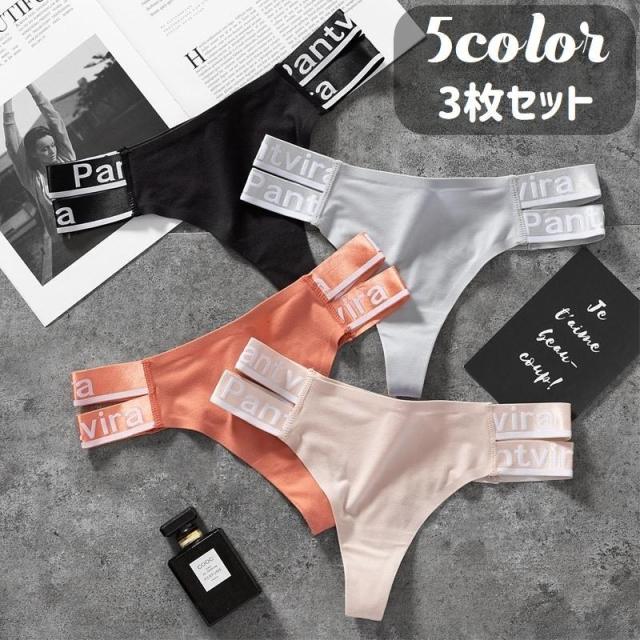 Tバック ショーツ 3枚セット レディース 女性 下着 インナー パンツ パンティー ランジェリー ロゴ スポーツ ローライズ ローウエスト シンプル