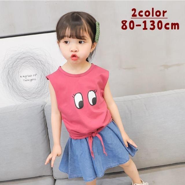 セットアップ キッズ ベビー ノースリーブ 目玉プリント スカート 子供服 こども服 ラウンドネック プルオーバー カジュアル おしゃれ 可愛い かわ