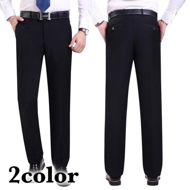 スラックス ノータック メンズ 男性用 ボトムス 無地 黒 ネイビー 長ズボン ロングパンツ ハイウエスト ポケット付き ストレート スーツ 定番 シ