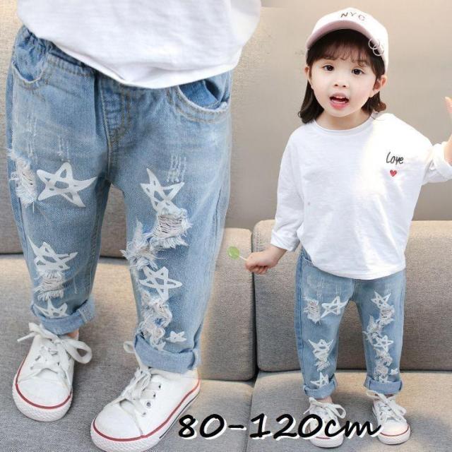 デニムパンツ 子供服 キッズ ベビー ジーパン Gパン ジーンズ テーパードパンツ スター プリント ダメージ加工 おしゃれ