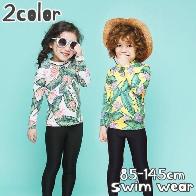 ラッシュガード 上下 2点セット セットアップ 水着 キッズ ジュニア ベビー 子供用 女の子 男の子 長袖 プルオーバー ロングパンツ レギンス 花