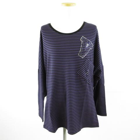 【中古】バレンザ VALENZA カットソー 長袖 ボーダー ラインストーン 紫 40 *T377 レディース