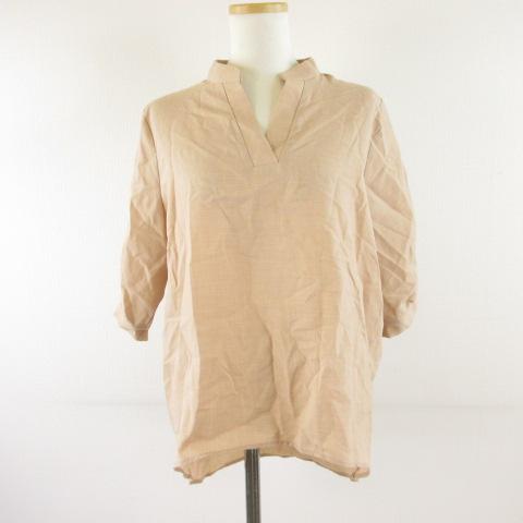【中古】ディーホリック DHOLIC カットソー ブラウス 七分袖 スキッパー ベージュ *T447 レディース