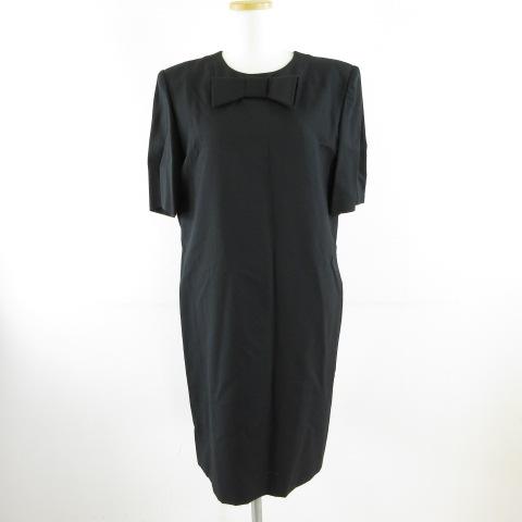 【中古】ピエールカルダン Pierre Cardin ブラックフォーマル ワンピース 五分袖 ひざ丈 リボン 黒 11 *T473 レディース