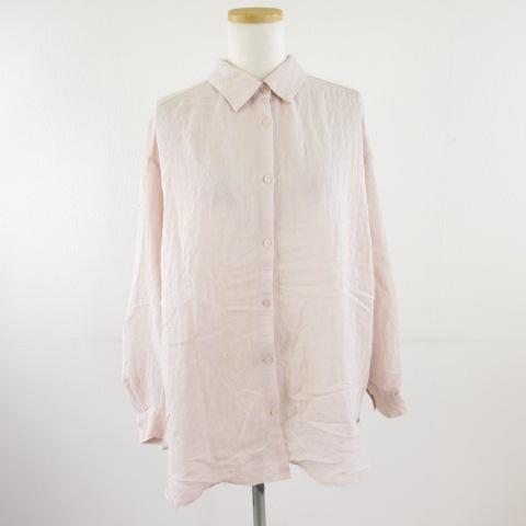 【中古】ジーユー GU シャツ ブラウス 長袖 ピンク L *T493 レディース