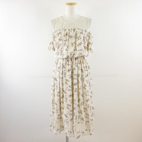 【中古】イング INGNI ワンピース ミディ丈 レースレイヤー 花柄 肩開き アイボリー ライトベージュ M *T368 レディース