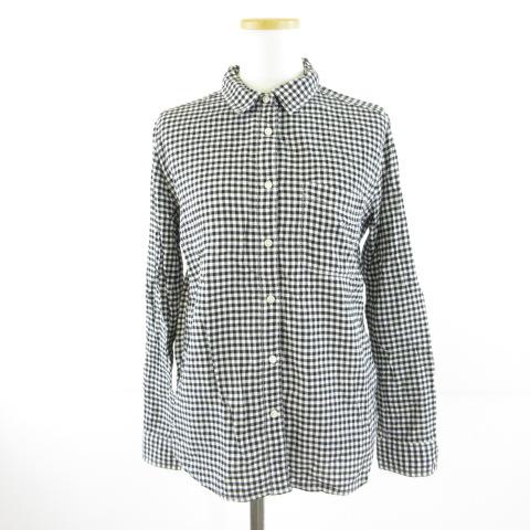 【中古】ジーユー GU シャツ ブラウス 長袖 チェック 黒 白 M *T425 レディース