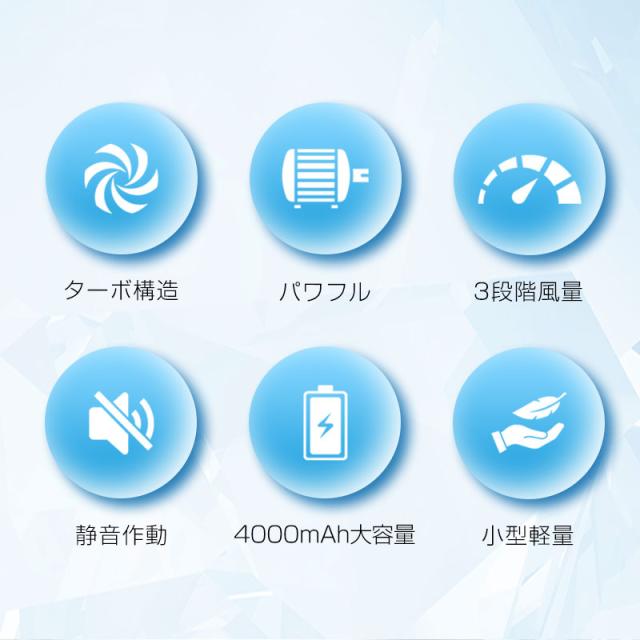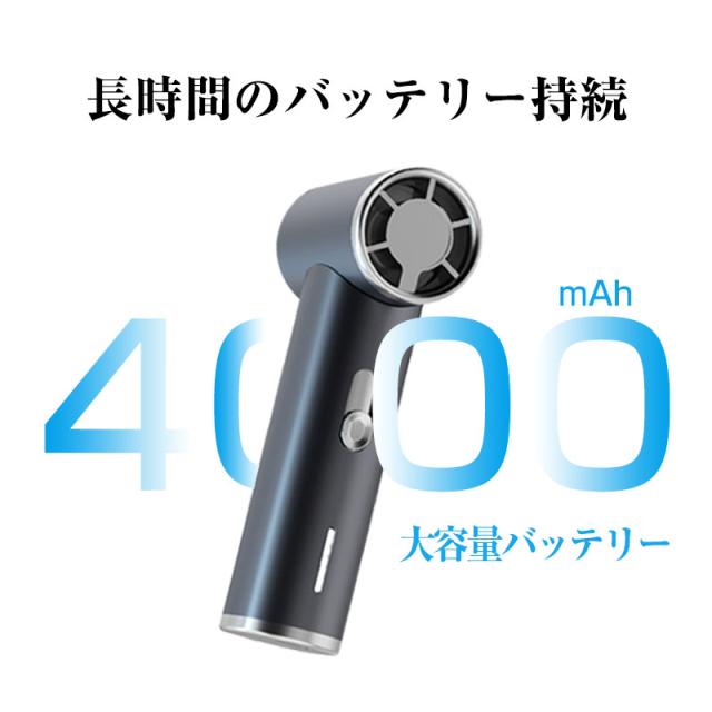 本製品は4000mAhの大容量バッテリーを搭載し、長時間の連続使用が可能です。強力なモーターとアルミニウム合金製の羽根デザインが、従来比20%向上した風量を実現し、夏の屋外イベントからオフィス環境まで、持続的な快適さを提供します。