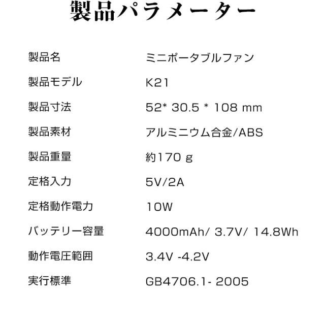 - このミニファンはコンパクトで風力も十分。外出先でも軽くて便利に使えます。すぐに涼しくなり、夏に最適!