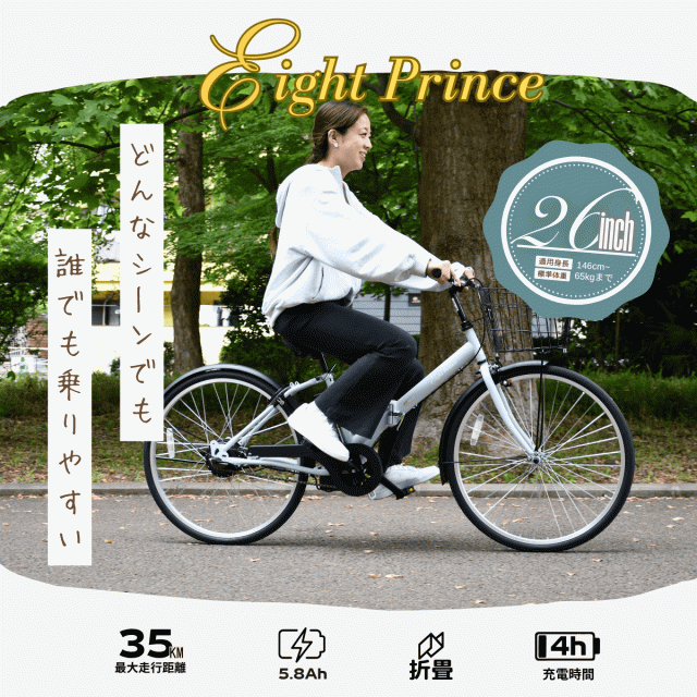 NEW登場!【エイトプリンス】独自アシストプログラム採用 オリジナル電動アシスト自転車 折りたたみSST-DRO110【変速なし/26インチ/アシストONEモード】 軽量版 電動自転車 通勤通学に便利 電動自転車 おすすめ 格安