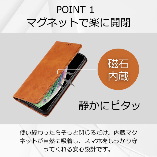 マグネット開閉で使いやすく、横置きスタンドとしても活躍します。