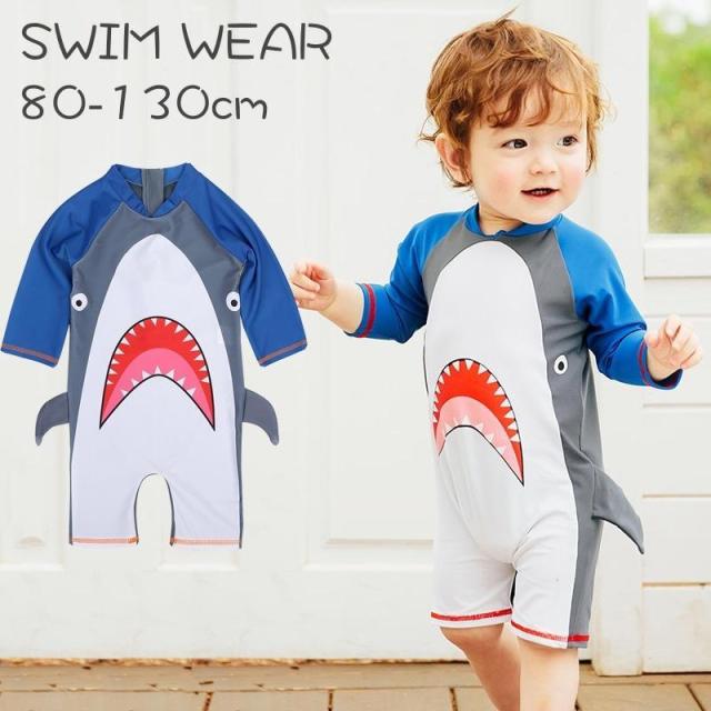 水着 スイムウェア オールインワン ラッシュガード 子供 キッズ ベビー 男の子 女の子 つなぎ バックジッパー ファスナー サメ シャーク なりきり