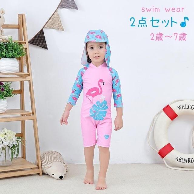 フラミンゴのイラストがかわいい女の子向けのキッズ用水着です。