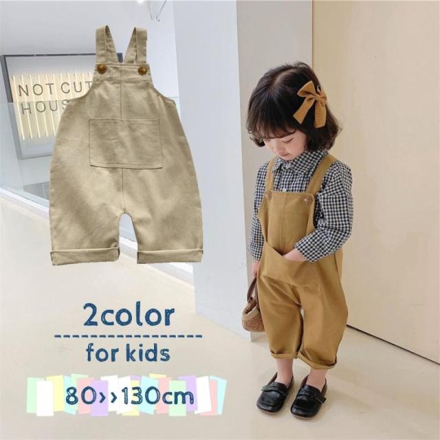 オーバーオール サロペット ボトムス キッズ ベビー 男の子 女の子 子供服 子ども おしゃれ かわいい シンプル キュート つなぎ ポケット 長ズボ