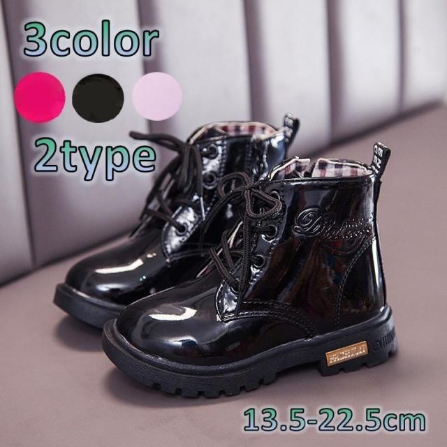 エナメル風のキッズ用レースアップショートブーツです。