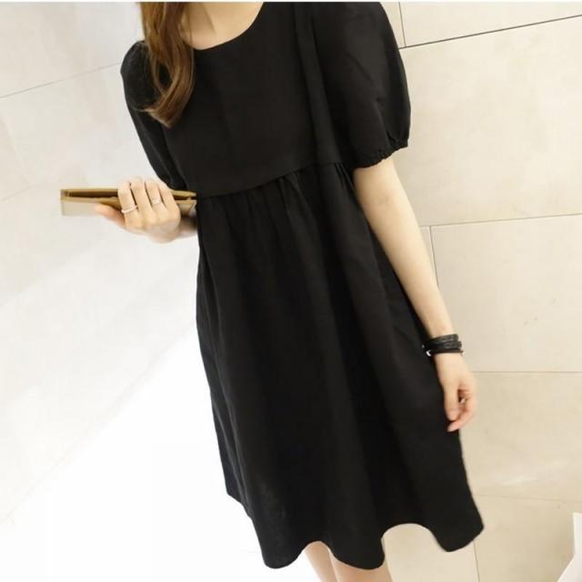 マタニティワンピース レディース マタニティ 授乳服 ブラック カーキ バルーンスリーブ 膝丈 半袖