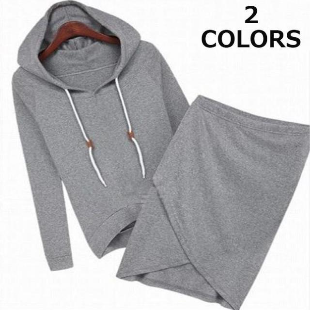 セットアップ トップス パーカー スカート ひざ丈 上下セット 2点セット ルームウェア レディース スウェット カジュアル シンプル 無地 おしゃれ