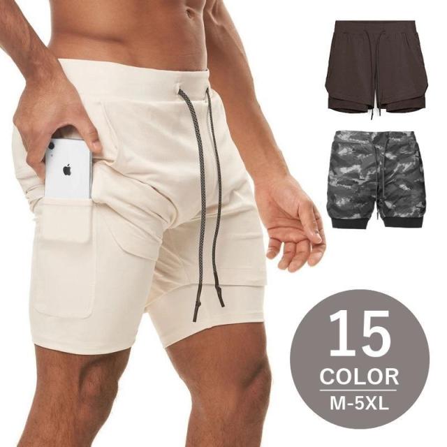 スポーツウェア ハーフパンツ スパッツ 一体型 5分丈 ボトムス メンズ 男性 ポケット 無地 単色 シンプル 迷彩 大きいサイズ ランニング ジム
