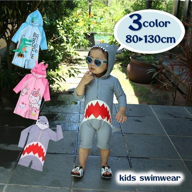 水着 つなぎ オールインワン スイムウェア フード付き キッズ ベビー 男の子 女の子 ラッシュガード ハーフジップ かわいい おしゃれ 長袖 紫外線