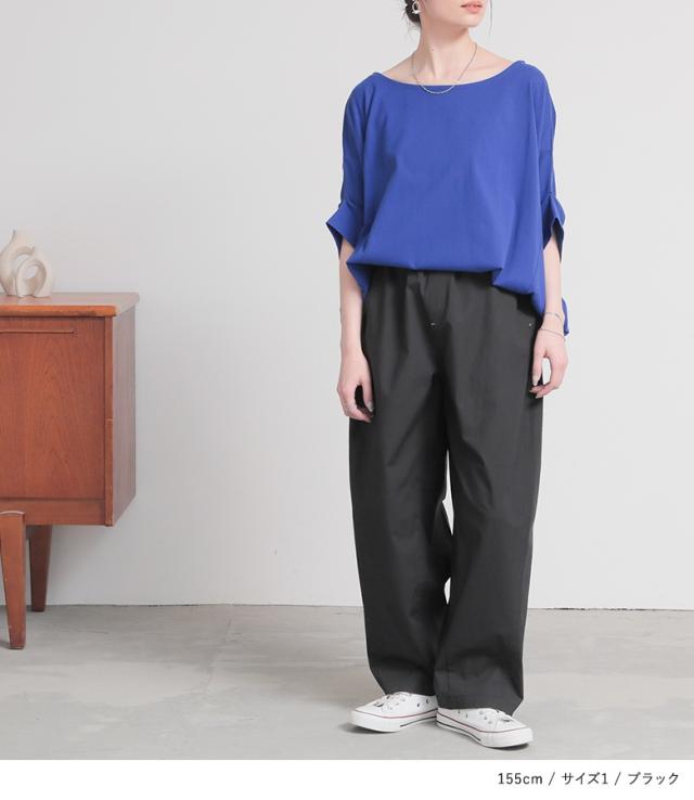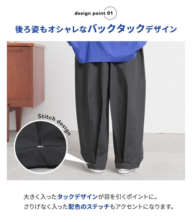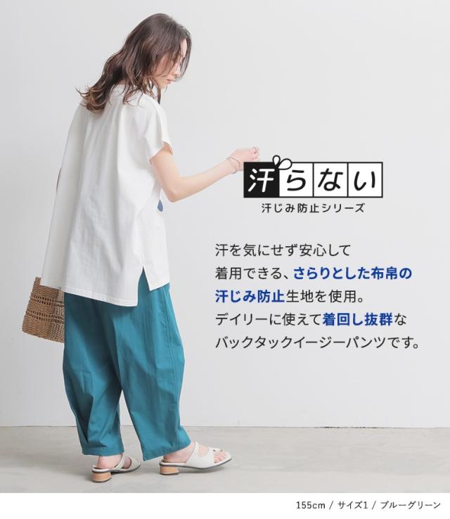 『汗じみ防止イージーバックタックパンツ』※メール便可※【10】[パンツ レディース ボトムス ロング丈 汗じみ防止 撥水加工 イージーパンツ ワイド タック 配色 ステッチ ウエストゴム 春 夏]