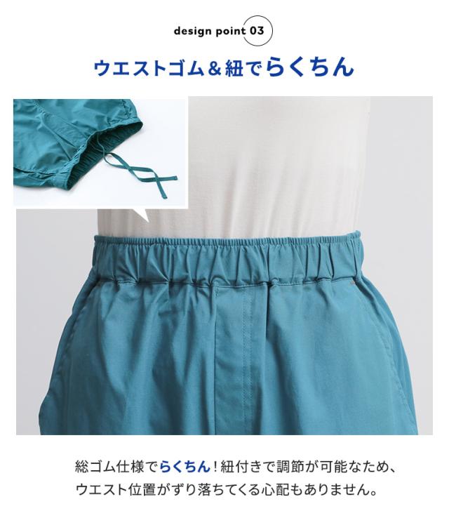 | staff:Q/159cm B78 W62 H91 【普段着用】 Tops: S/M Bottoms: S/M | 【1】 着丈(ウエスト穿き):ちょうどくるぶし位 ウエスト:ややゆったり ヒップ:ゆったり 太もも周り:ゆったり 全体:ややゆったり 内紐がついていて、調整ができます。 私の場合は、1を選びます。 |