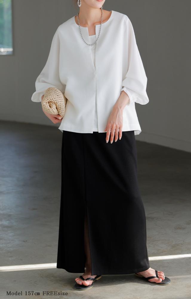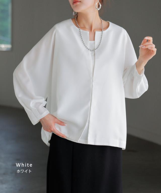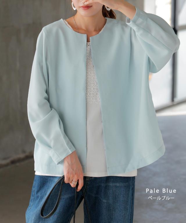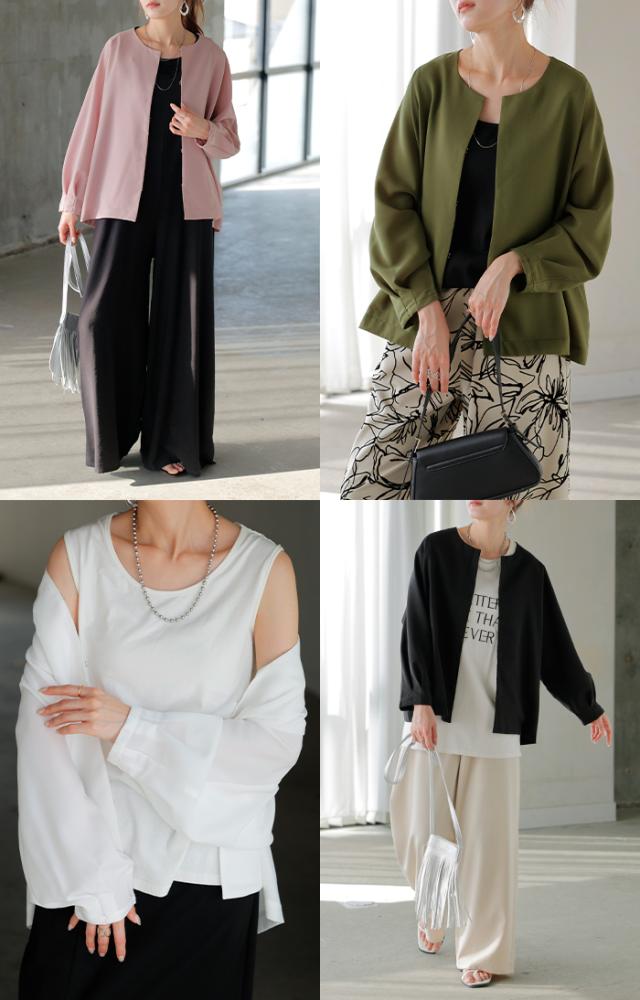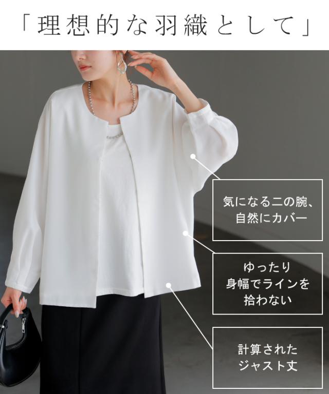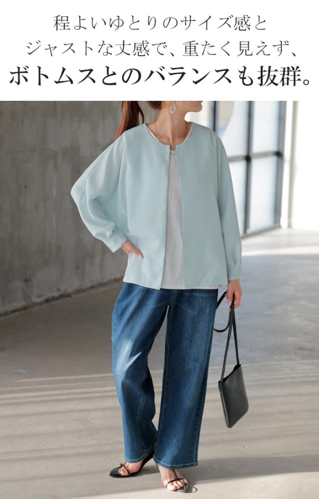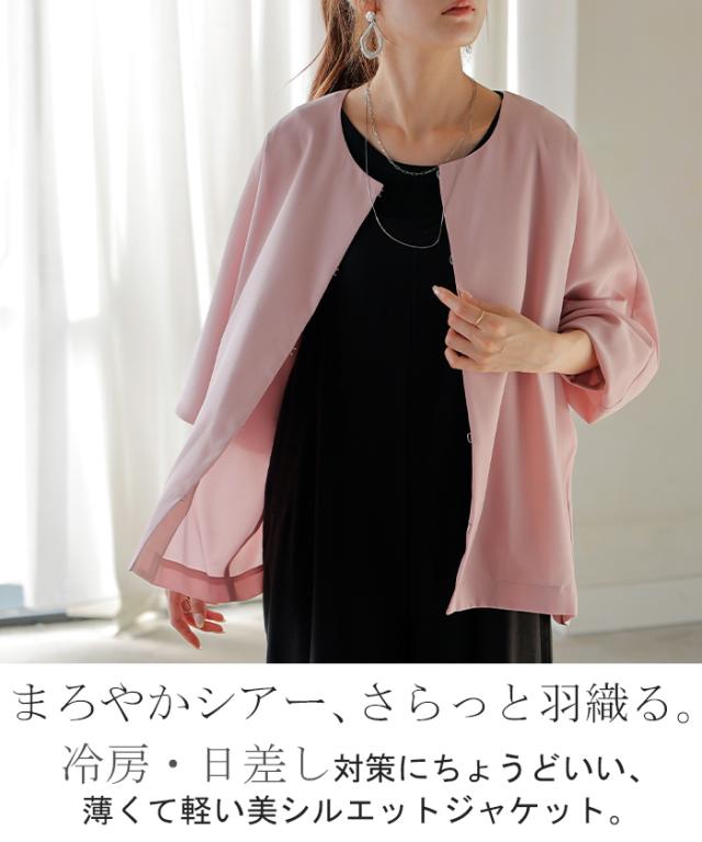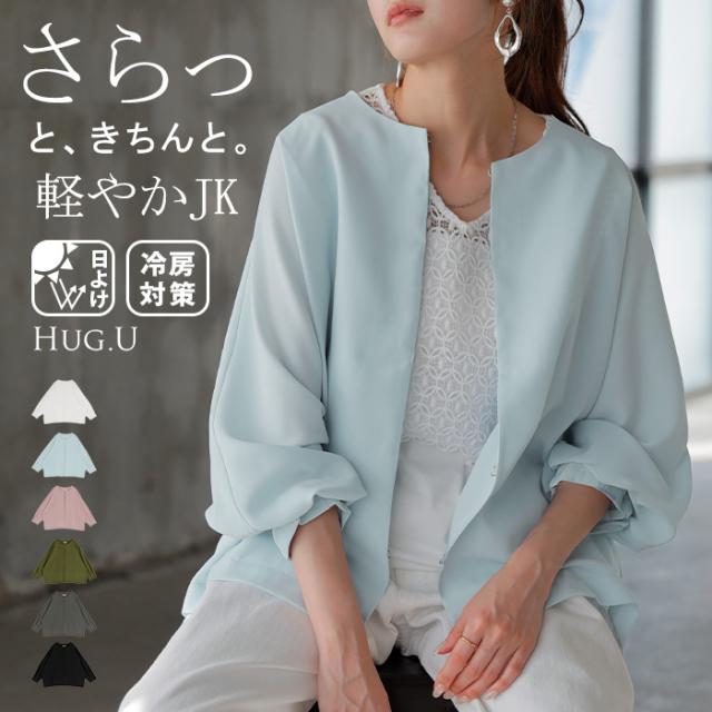 ジャケット ノーカラー アウター レディース ロング 無地 長袖 羽織 ライトアウター オーバーサイズ 透け シアー シアージャケット 体型カバー 二の腕カバー 冷房対策 日焼け対策 通勤 オフィスカジュアル 黒 白 春 夏 HUG.U メール便