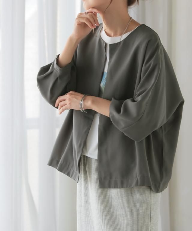 着るだけで旬なスタイルが決まるドルマンシアージャケットです。
